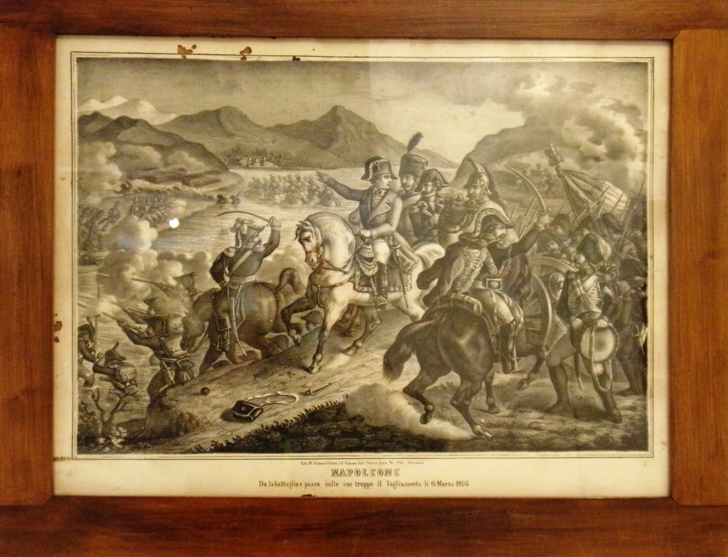 IL TERRITORIO DI VALVASONE DIVENNE TEATRO DI UNA CRUENTA BATTAGLIA. LA FRANCIA AVEVA DICHIARATO GUERRA ALL’ IMPERO ASBURGICO. NAPOLEONE BONAPARTE, DOPO UNA CONTINUA SERIE DI CALMOROSE VITTORIE, PUNTAVA ALLA CONQUISTA DELLE ZONE DI CONFINE. IL 16 MARZO 1797 L’ESERCITO FRANCESE SFERRO’ UN ATTACCO ALL’ESERCITO ASBURGICO GUIDATO DALL’ARCIDUCA CARLO DI TECHEN. NE SEGUI’ UNA LUNGA E SANGUINOSA BATTAGLIA CHE EBBE TERMINE A NOTTE INOLTRATA. LE GRAVE DEL TAGLIAMENTO FURONO INONDATE DI SANGUE. I FRANCESI, VITTORIOSI, OCCUPARONO GORICIZZA. NAPOLEONE, CHE SI ERA INSEDIATO NEL CASTELLO DI VALVASONE, ORDINO’ A MASSENA DI RAGGIONGERE SPILIMBERGO, L’OBIETTIVO ERA QUELLO AVANZARE VERSO PALMANOVA E GRADISCA.