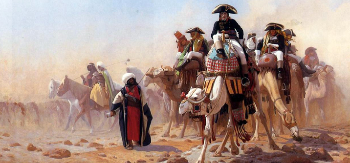 IL TRATTATO DI CAMPOFORMIDO, COSTITUI’ IL PRIMO SEGNALE CHE FECE TRASPARIRE LE ASPIRAZIONI DEL BONAPARTE. IL RUOLO DI GENERALE, ( SOPRATTUTTO DOPO LA SERIE DI VITTORIE OTTENUTE NELLA PRIMA CAMPAGNA D’ ITALIA), STAVA STRETTO A NAPOLEONE. DOPO QUESTI TRIONFI CONTRO L’ IMPERO ASBURGICO IL DIRETTORIO DOVETTE PROGRAMMARE UNA SECONDA CAMPAGNA MILITARE PER DOMINARE IL COMMERCIO MARITTIMO DOVE L’INGHILTERRA COSTITUIVA UN GROSSO OSTACOLO. L’OBIETTIVO ERA LA CONQUISTA DEL CANALE DI SUEZ CHE APRIVA IL COMMERCIO VERSO LE L’INDIA. NAPOLEONE CONSEGUI’ IMPORTANTI VITTORIE, CONQUISTO’ MALTA E, IL PRIMO LUGLIO 1798, VINSE LA BATTAGLIA DELLE PIRAMIDI CONTRO L’ESERCITO DEI MAMMELUCCHI, UNA CASTA MILITARE CHE GOVERNAVA L’EGITTO PER CONTO DELLO STATO TURCO.