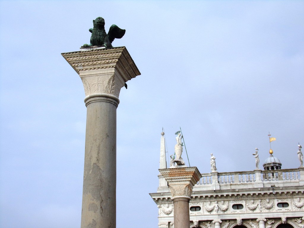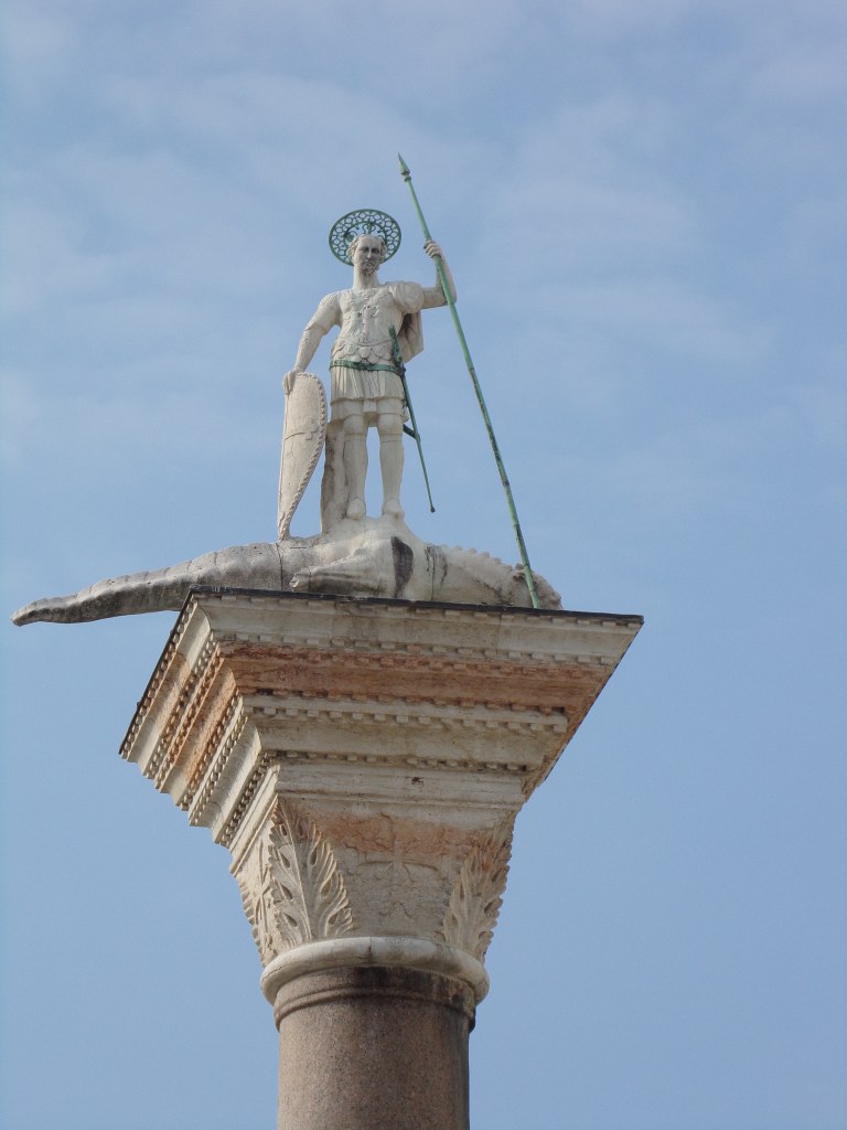UNA LEGGENDA NARRA CHE NEL 1172, AL TERMINE DELLA CROCIATA DI COSTANTINOPOLI, VENEZIA AVREBBE OTTENUTO GRAZIE DELL’ AIUTO MILITARE, TRE COLONNE IN MARMO. LA MERCE VENNE TRASPORTATA A VENEZIA CON LA NAVE COMANDATA DA JACOPO ORSEOLO FALIER. DURANTE LO SCARICO, NEI PRESSI DEL MOLO, UNA DELLE TRE COLONNE CADDE IN MARE, MENTRE LE ALTRE DUE VENNERO DEPOSITATE A TERRA E FURONO ERETTE CIRCA UN CENTINAIO DI ANNI DOPO, GRAZIE ALLA TECNICA UTILIZZATA DALL’INGEGNERE BERGAMASCO NICCOLO’ STRATONIO: LE CORDE DI CANAPA, CHE TRAEVANO LE COLONNE, IMBEVUTE DI ACQUA, PROVOCAVANO UN RIGONFIAMWENTO CHE PERMETTEVA ALLE FUNI DI ACCORCIARSI. LA SERENISSIMA CONCESSE ALLO STRATONIO LA POSSIBILITA’ APRIRE UNA SALA DA GIOCO D’ AZZARDO PER DADI, MA QUESTO GENERE DI ATTIVITA’, FINO A QUEL MOMENTO, ERA VIETATA. L’ ASTUZIA DEI GOVERNANTI STETTE NEL FATTO CHE L’ ATTIVITA’ DOVEVA SVOLGERSI NELLO SPAZIO DELINEATO TRA LE 2 COLONNE, LUOGO UTILIZZATO PER LE ESECUZIONI CAPITALI. I VENEZIANI, DI NATURA SCARAMANTICA, NON LO AVREBBERO MAI FREQUENTATO. STRANTONIO CAMBIO’ IL SUO COGNOME CON “BARATTIERI” FAMIGLIA RAPPRESENTATA DA UNO STEMMA ARALDICO RAFFIGUANTE 3 DADI DA GIOCO. LA COLONNA MANCANTE DOVE SI STROVA? SI TRATTA DI UNA LEGGENDA O SI TROVA IN UN FONDALE MARINO NEI PRESSI DELLA CITTA’ ? NEL FONDO MELMOSO, RICOPERTA DI ALGHE RISULTA DIFFICILE INDIVIDUARLA, IL PROFESSOR ROBERTO PADOAN E LA SUA EQUIPE METTERANNO IN FUZIONE CON IL PREGETTO AURORA UNA NUOVA TECNICA PER LA CHIARIFICAZIONE DELLE ACQUE, TECNICA BREVETTATA DALLO STESSO PADOAN. FORSE TRA QUALCHE ANNO FRA LE 2 COLONNE ESISTENTI SI INNALZERA’ UNA NUOVA COLONNA CON ALL’ ESTREMITA’ IL “SIMBOLO DOGALE”, FINALMENTE SARA’ COMPLETATO QUELLO CHE PER SECOLI E’ RIMASTO INCOMPIUTO.