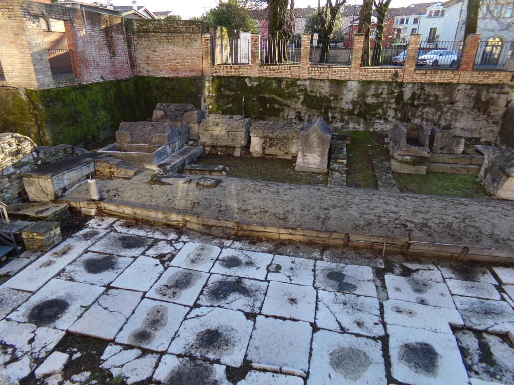NEL 313 D.c., UN ALTRO IMPERATORE SUCCESSE A DIOCLEZIANO, UN SOVRANO CHE AVEVA COME SIMBOLO LA CROCE SOGNATA PRIMA DELLA VITTORIA NEI CONFRONTI DI MASSENZIO, SUL PONTE MILVIO : “IN HOC SIGNO VINCES” (SOTTO QUESTO SEGNO VINCERAI – VEDI ARTICOLO LA CROCE DI AQUILEIA), L’ “IMPERATORE COSTANTINO”. CON L’EDITTO DI MILANO DELL’ ANNO 313, FECE PROCLAMARE IL CRISTIANESIMO RELIGIONE DI STATO, PONENDO DEFINITIVAMENTE FINE ALLE PERSECUZIONI. FU L’INIZIO DI UNA NUOVA ERA, I CRISTIANI, LIBERI DI PROFFESARE LA PROPRIA FEDE, INIZIARONO A COSTRUIRE LUOGHI DI CULTO. A CONCORDIA NELL’ANNO 350 , ERESSERO UN EDIFICIO A FORMA DI CROCE, LA “TRICHORA MARTIRIUM” DOTATO DI TRE ABSIDI SEMICIRCOLARI, UN PAVIMENTO DECORATO IN MOSAICO CON AL CENTRO UN LOCULO CRUCIFORME CHE CUSTODIVA LE OSSA DEI MARTIRI CONCORDIESI. ORA LE RELIQUIE DEI SANTISSIMI MARTIRI RIPOSANO ALL’ INTERNO DELLA CATTEDRALE DI SANTO STEFANO, DENTRO UN’ URNA DEPOSITATA INTERNAMENTE AD UN ANTICO SARCOFAGO ROMANO DI ETA’ FLAVIA. NELLA BASILICA SONO CUSTODITE ANCHE LE RELIQUIE DEGLI APOSTOLI ANDREA E TOMMASO, DI SAN GIOVANNI BATTISTA E DEGLI EVANGELISTI LUCA E GIOVANNI.