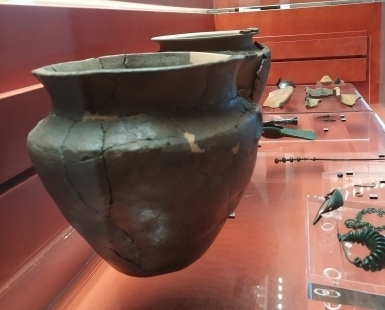 IN VIA MOLINAT A MANIAGO, IN UN TERRENO SASSOSO APPARIVANO DELLE MACCHIE GRIGIASTRE. GLI SCAVI EFFETTUATI IN QUEL PUNTO RIPORTARONO ALLA LUCE UN SEPOLCRETO CON TOMBE AD INCINERAZIONE DI ORIGINE CELTICA ACCOMPAGNATE DAL CORREDO FUNEBRE DEI DEFUNTI: FRAMMENTI DI TORQUES IN BRONZO, 2 FIBULE AD ARPA IN ARGENTO E ALTRI ANELLI E FIBULE IN FERRO.
