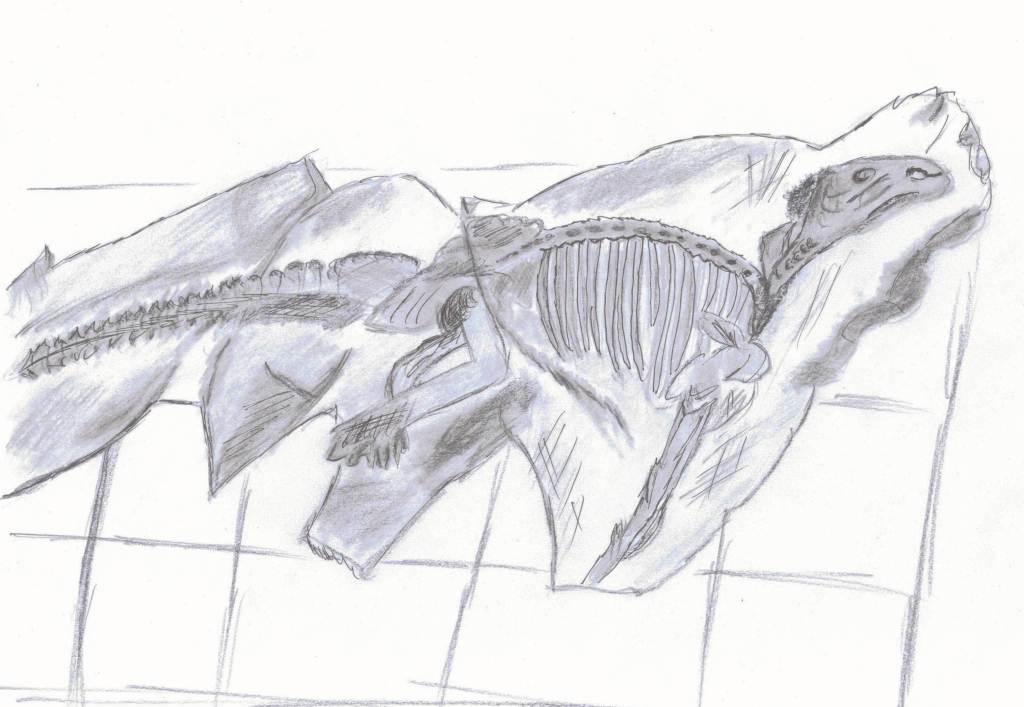 L’ ADROSAURO (LUCERTOLA INGOMBRANTE) ERA UN DINOSAURO VEGETARIANO VISSUTO NEL CRETACEO CIRCA 80 MILIONI DI ANNI FA APPARTENENTE ALLA FAMIGLIA DEGLI HYDROSAURIDI O DINOSAURI DAL BECCO AD ANATRA.