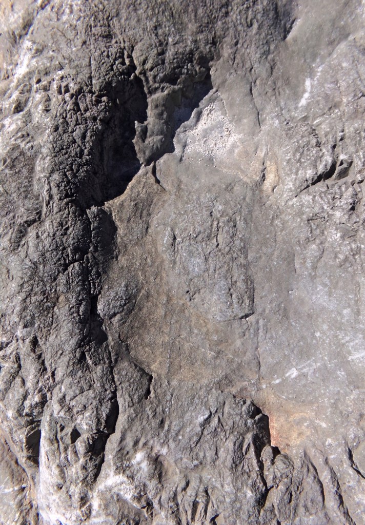 Mi sono recato sul luogo martedì 21 marzo 2023, il primo giorno di primavera. Dopo aver raggiunto il paesino di Dogna ho raggiunto la località di Chiout di Puppe. Dopo aver percorso circa un chilometro ho parcheggiato l’auto in prossimità di una sbarra. Seguendo un percorso in discesa, ho raggiunto una piccola centrale idroelettrica. Ho trovato molte difficoltà ad individuare i nidi, ho scattato alcune foto alle rocce sembravano avere quelle caratteristiche . E’ probabile che un paio di immagini riportino delle impronte, in particolare due orme ravvicinate con tre artigli e un rialzo che sembra il palmo della zampa.