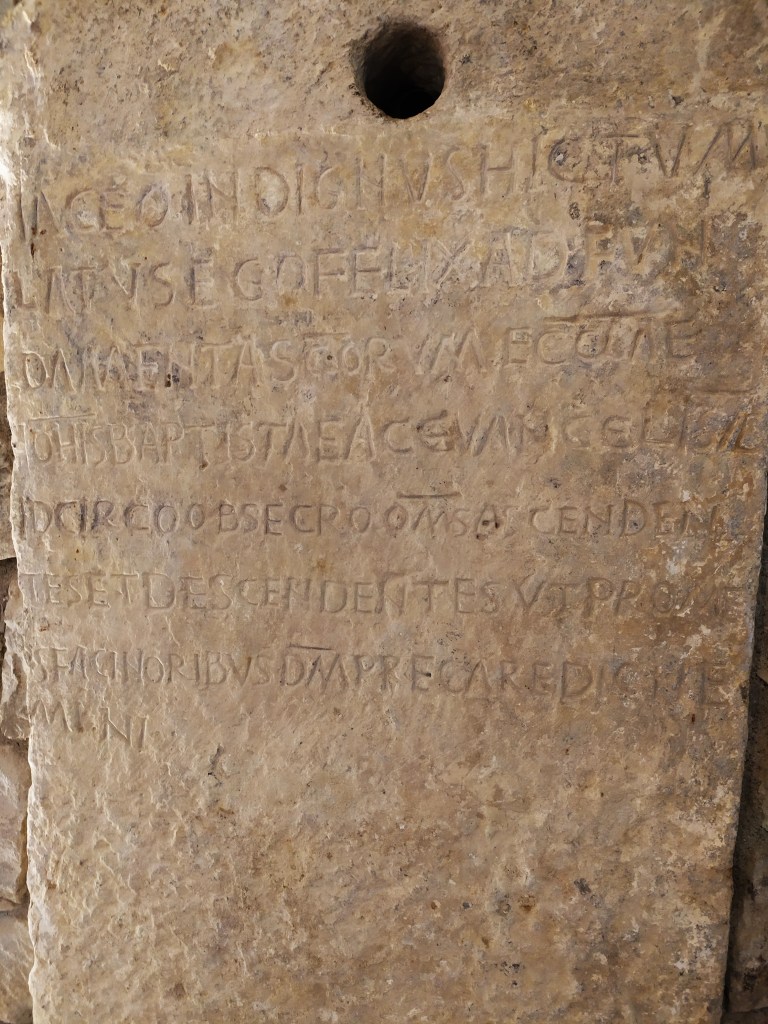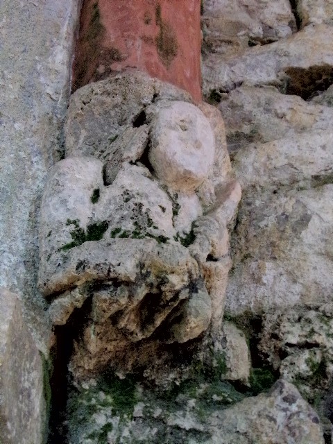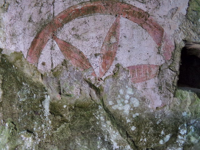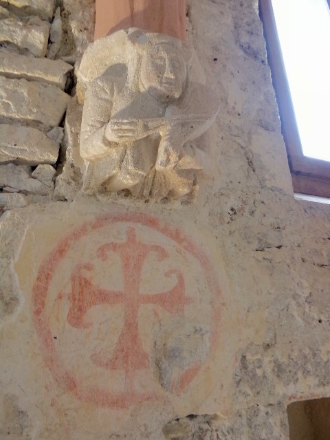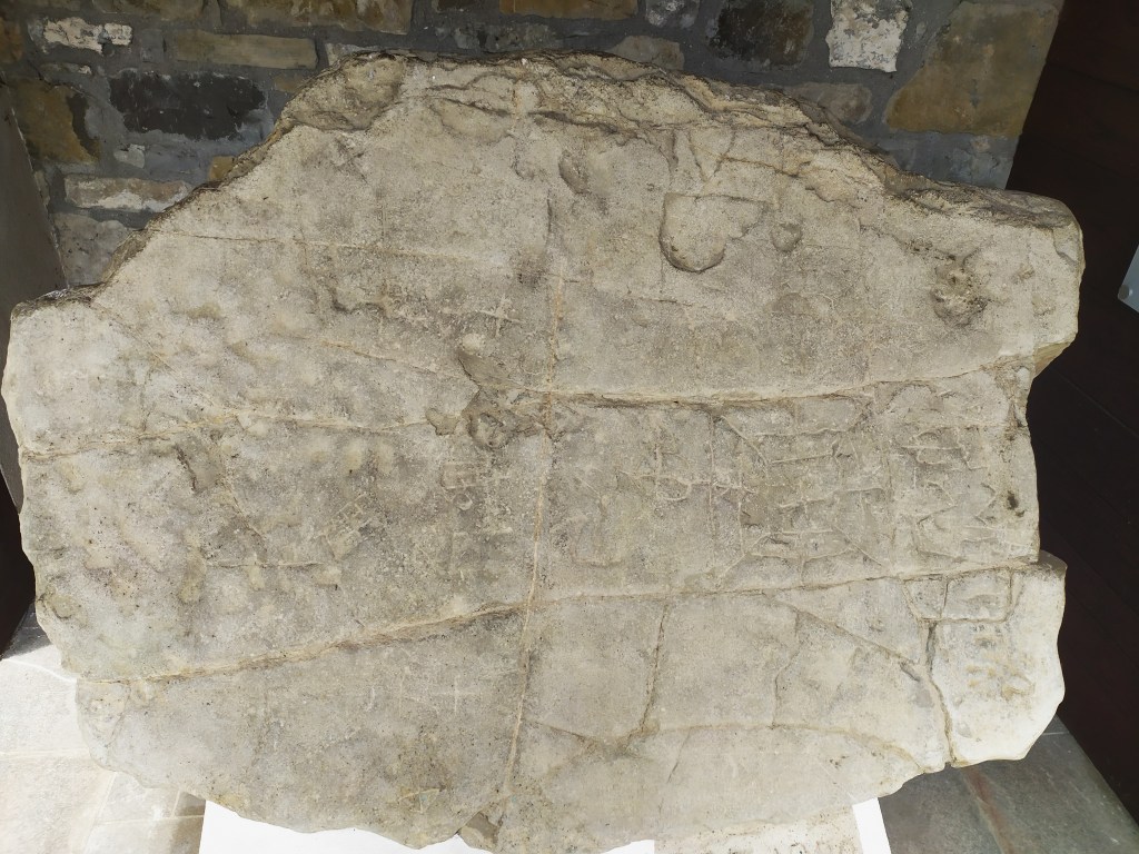 Ai piedi ella scalinata si può notare il primo simbolo misterico di questo luogo. Non si conosce con certezza il suo significato, sembrerebbe un’incisione che rappresenta il gioco della tria, un simbolo che i templari lasciavano spesso nel loro cammino, ma potrebbe nascondere un diverso significato ancora incompreso.