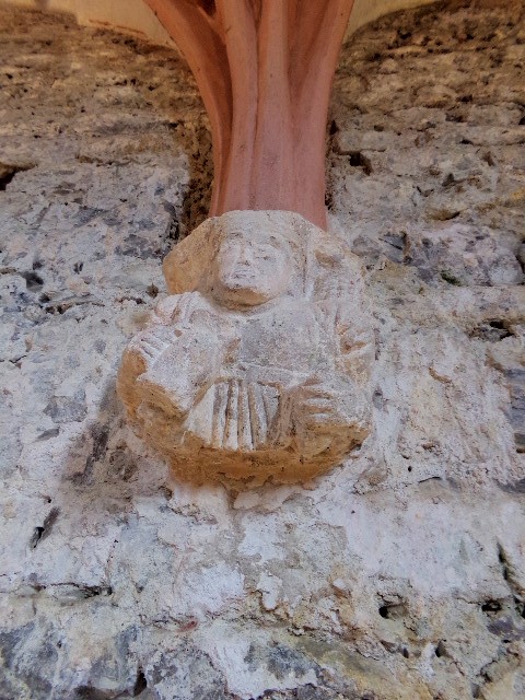 La volta in legno, presente nell’abside, è formata da un intreccio di losanghe a costoloni a formare una stella a sette punte. Le mensole su cui posano i costoloni sono stati scolpiti nel ‘400 e raffigurano personaggi di vita quotidiana del tempo. Al centro della volta è incisa nel legno l’immagine della madonna quasi ad indicare il legame del mondo celeste al mondo terreno rappresentato dai personaggi scolpiti nella pietra che la sostengono. La stella a sette punte rappresenta la fusione del mondo spirituale o celestiale rappresentato dal numero tre a quello terreno con il numero quattro.