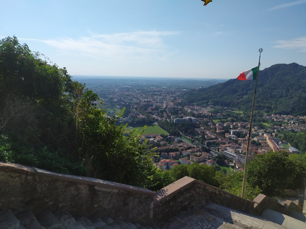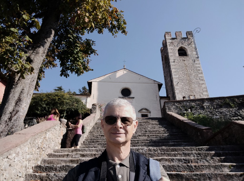 Una giornata settembrina, giunsi in auto, da Vittorio Veneto, all’incrocio che a sinistra si dirigeva all’antico centro di Serravalle e che a destra indicava il santuario di Santa Augusta, imboccai la strada di destra. Poco più avanti il navigatore mi indicò di girare a sinistra non dandomi altre indicazioni. Mi trovai costretto a chiedere informazioni a qualche passante. Mi ritrovai all’imbocco della salita, una stradina strettissima e piena di curve. Dopo due o tre chilometri arrivai ad un piazzale dove mi fu possibile parcheggiare l’auto.