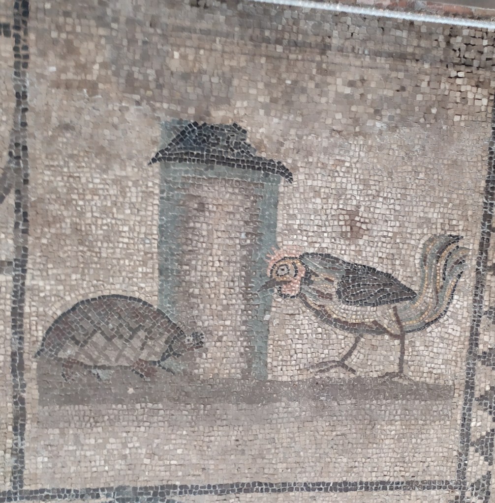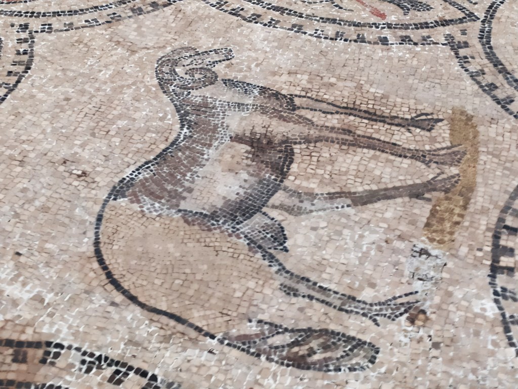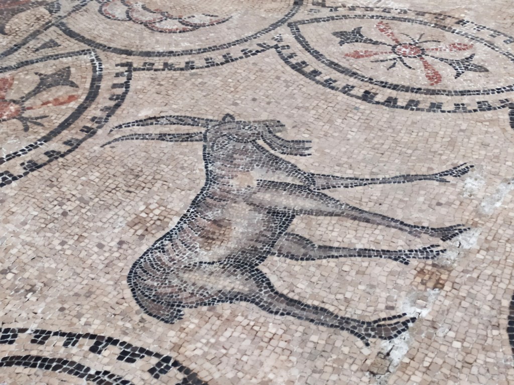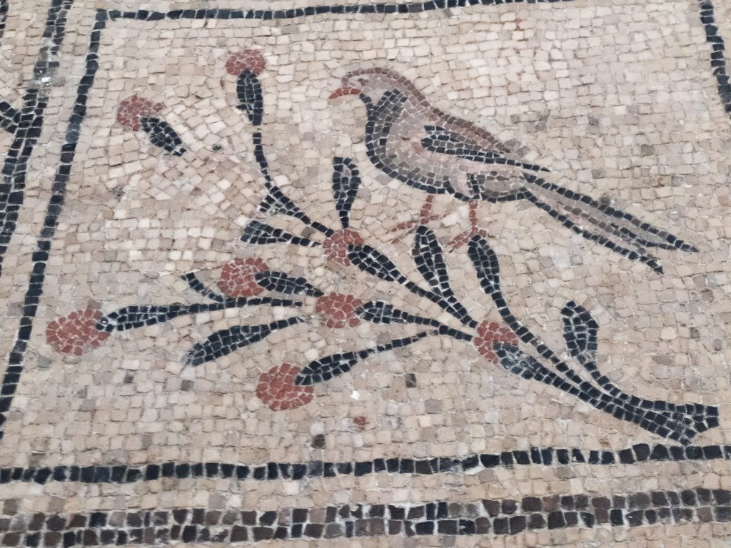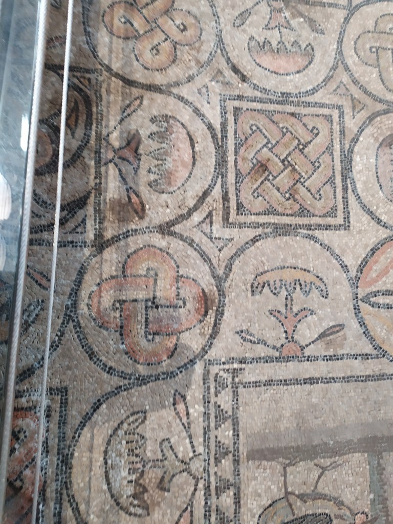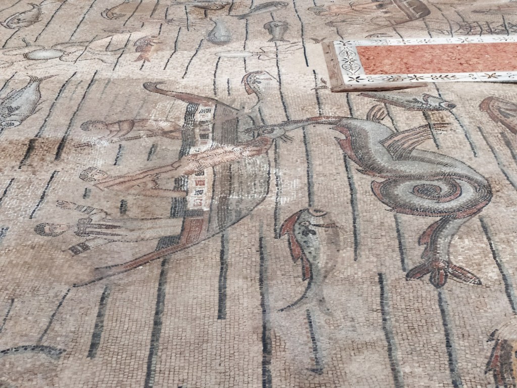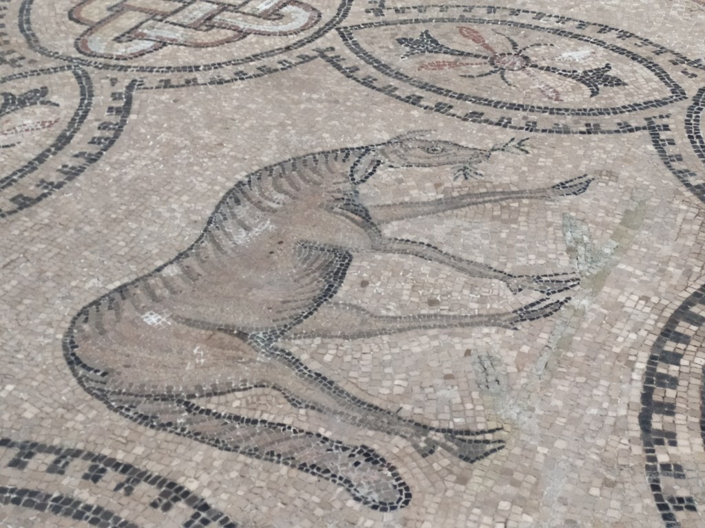 Sebbene la basilica abbia subito continui lavori di restauro, gli archeologi sono riusciti a riportare alla luce i pavimenti più antichi del complesso risalenti ad epoca romana. Il pavimento romano della chiesa venne scoperto agli inizi del 1900 sotto un altro pavimento medievale. Composizioni in mosaico con raffigurazioni zoomorfe simboliche e scene riferite a passi del vecchio testamento, si differenziano da quelle di epoca medievale composte da figure geometriche.