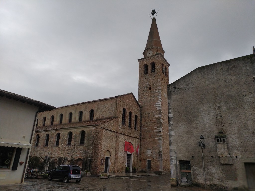 La basilica di Sant’Eufemia venne consacrata dal patriarca Elia nel 579 ed è affiancata da un campanile alto 42 metri alla cui estremità è stata posta la statua di San Michele conosciuto con il termine dialettale “l’Anzolo” (l’angelo). Un battistero ottagonale affianca il sacro edificio all’interno del quale è custodita una fonte battesimale esagonale.