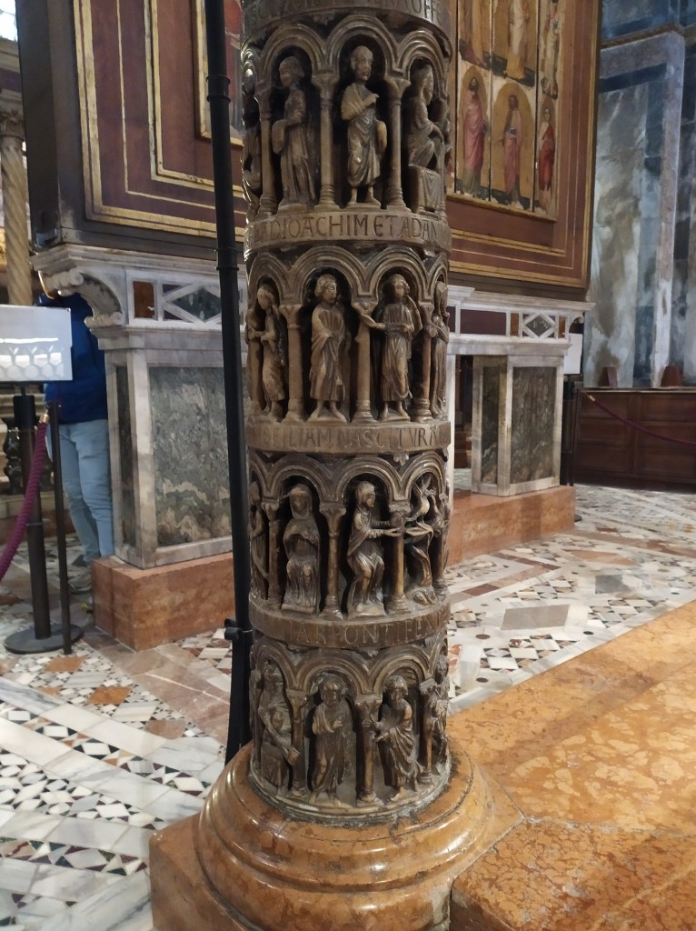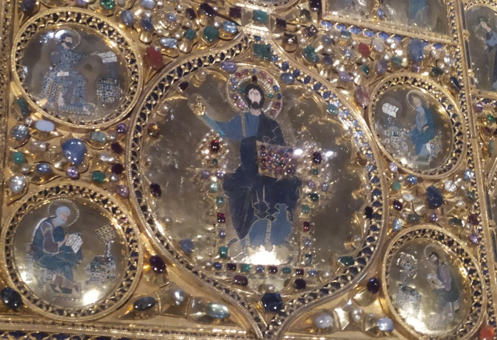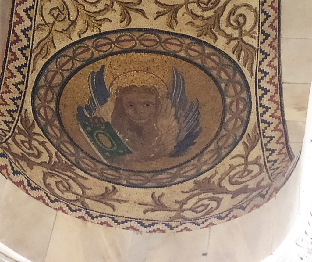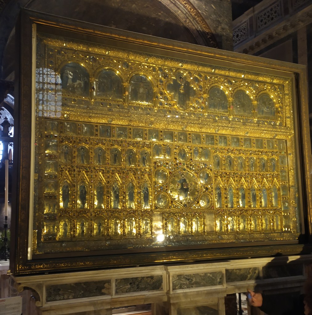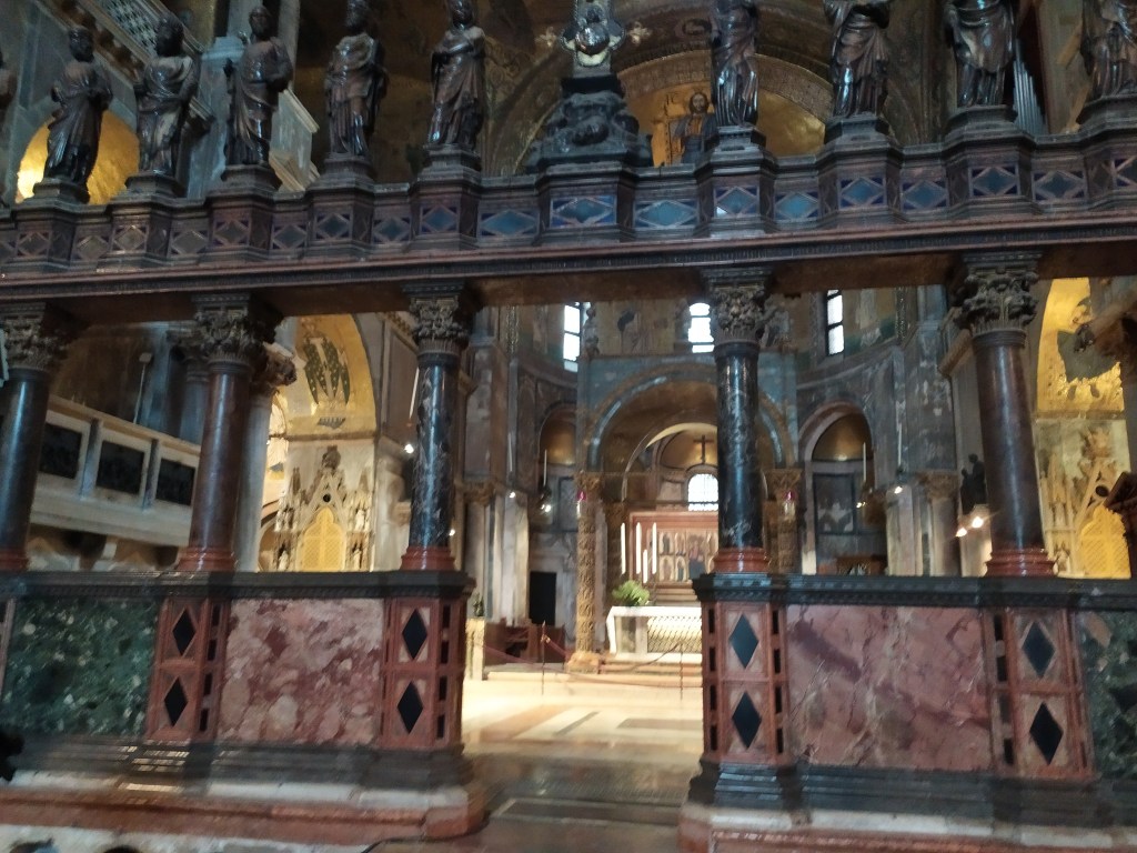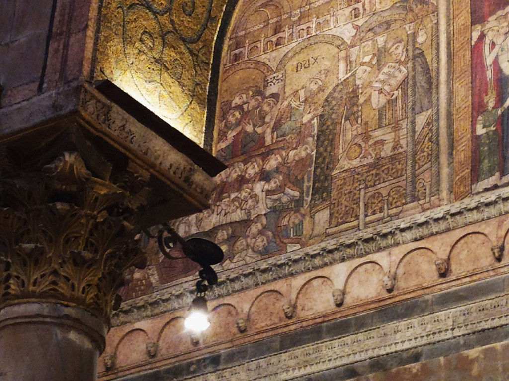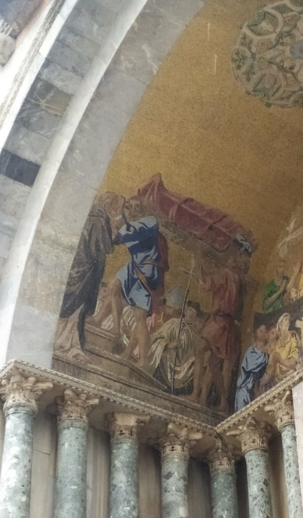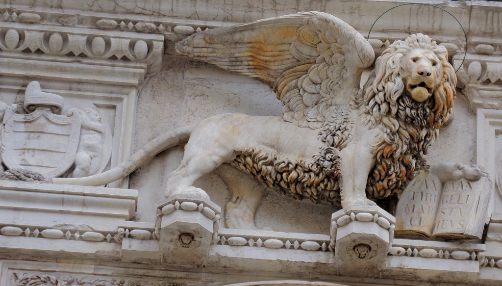 Una serie di indizi mi ha condotto innanzi alla maestosa basilica, artisticamente molto complessa, una facciata dipinta con raffinati affreschi e rifinite decorazioni, in alto, nella parte centrale appare, sotto un cielo stellato, l’immagine di un leone alato che, con la sua zampa custodisce saldamente un libro che porta la scritta “PAX TIBI MARCE EVANGELISTA MEUS”, che significa “pace a te Marco mio evangelista”.