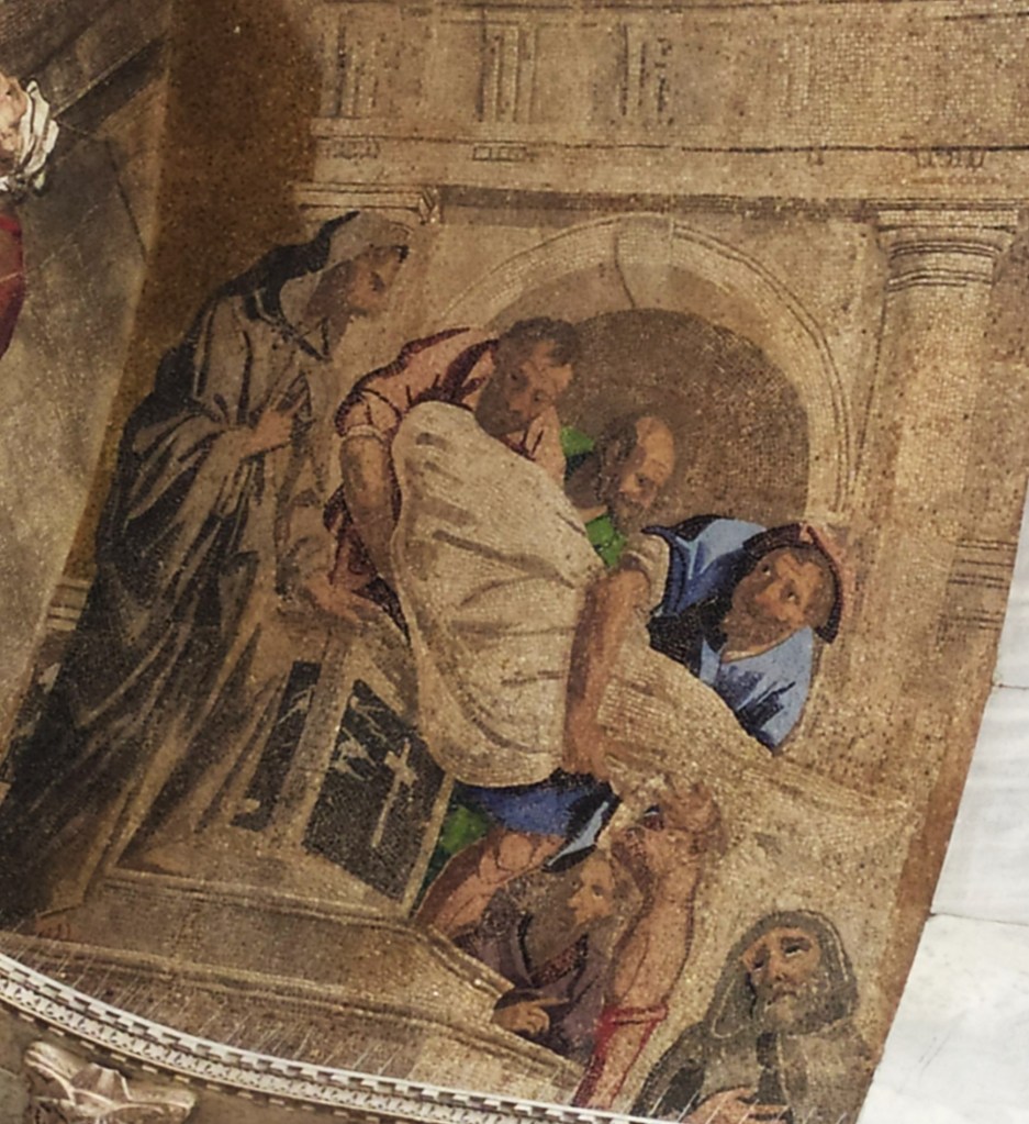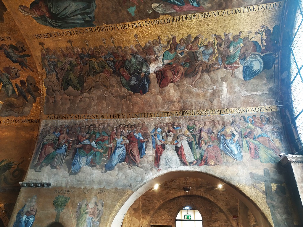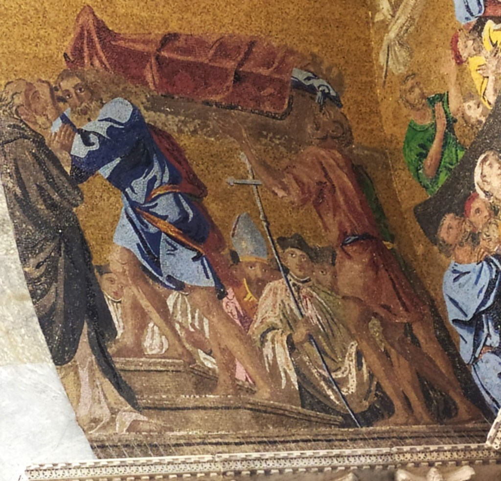 L’importanza della figura di San Marco si allinea con la presenza di San Pietro, testimonianze storiche raccontate in alcuni affreschi mettono in evidenza i contatti tra Marco ed il primo papa cristiano e con altri seguaci che conobbero il Cristo. La figura di Marco nel mondo cristiano godeva di un particolare rilievo, non solo dovuto ai contatti che l’evangelista ebbe con i discepoli che avevano vissuto con Gesù Cristo, ma anche perché rappresentava un importante livello di autorità ecclesiastica grazie alla nomina di vescovo della comunità copta fondata ad Alessandria d’Egitto. Secondo la tradizione, lo sbarco di San Marco in Italia avvenne nella spiaggia del litorale di Grado, precisamente a Belvedere di Aquileia , luogo dove iniziò l’opera di evangelizzazione nel territorio aquileiese e, sempre secondo la tradizione, presentò a San Pietro per la nomina di vescovo di Aquileia “Ermagora”.