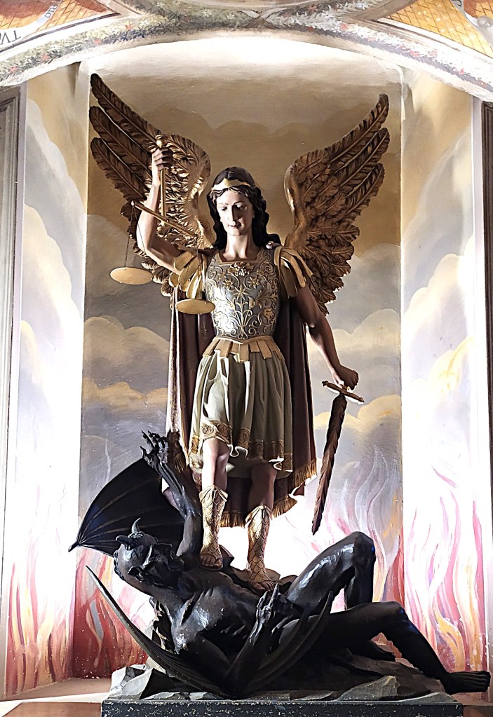 L’arcangelo Michele corrisponde all’entità che ha condotto alla vittoria la milizia celeste sugli angeli ribelli seguaci di Lucifero che secondo la profezia è destinato a squillare la tromba che annuncerà il giudizio universale .